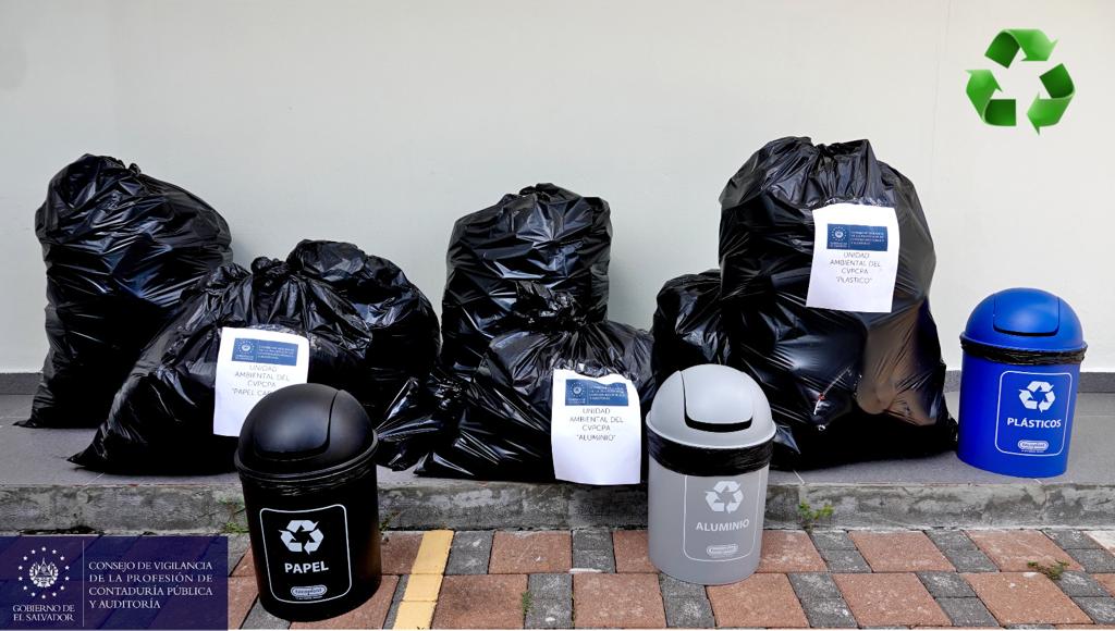El Comité de Gestión Ambiental del Consejo de Vigilancia de la Profesión de Contaduría Pública y Auditoría, desarrollando el plan de reciclaje realizó el retiro de Residuos Sólidos, que incluyen, papel, cartón, latas y plástico PEP. Agradecemos el apoyo de la Gerencia Ambiental de la Alcaldía de San Salvador.
